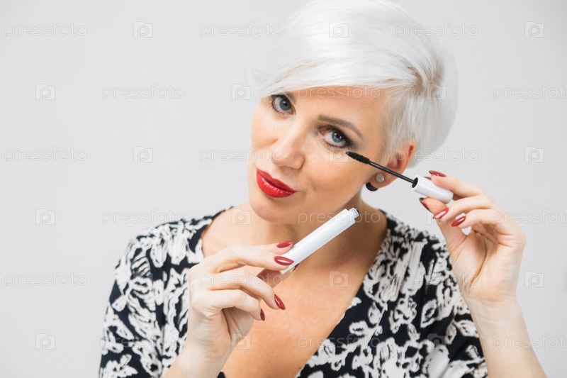 Крупным планом портрет модной взрослой блондинки макияж себя