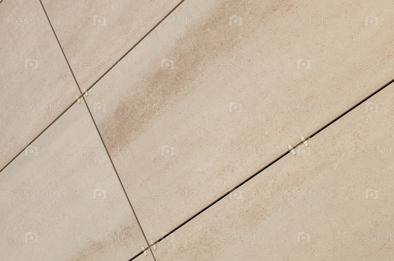 Угловой вид прямоугольной бетонной бежевой плитки на стене