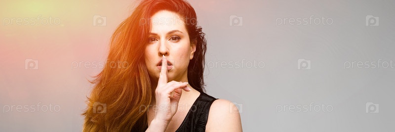 Эмоциональная довольно самоуверенная симпатичная модель плюс-size, стоящая в студии и демонстрирующая свою красоту на сером фоне