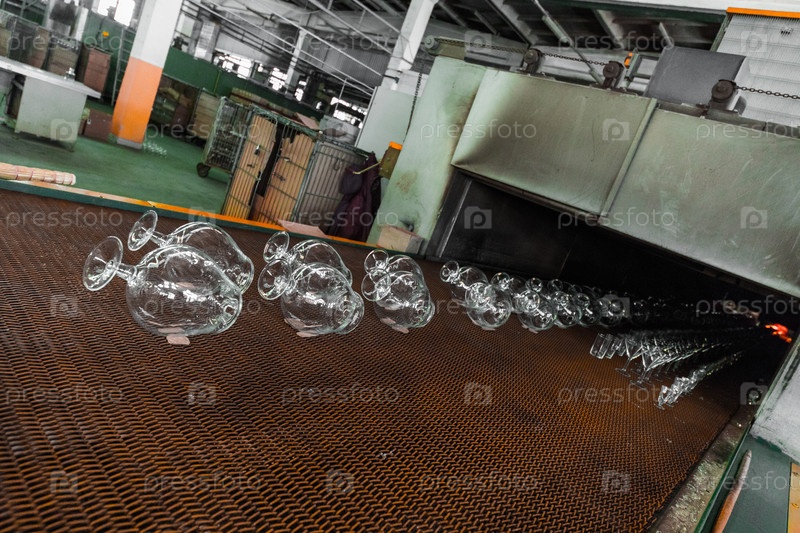 Производство стекольной посуды, Заготовки на конвейере покидают печь