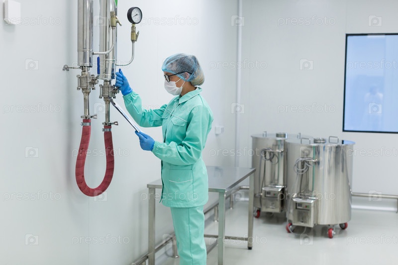 Ученый в синем костюме проверяет давление