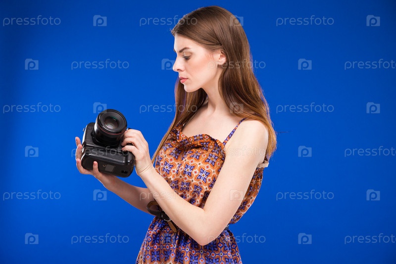 Молодая девушка с фотоаппаратом в руках