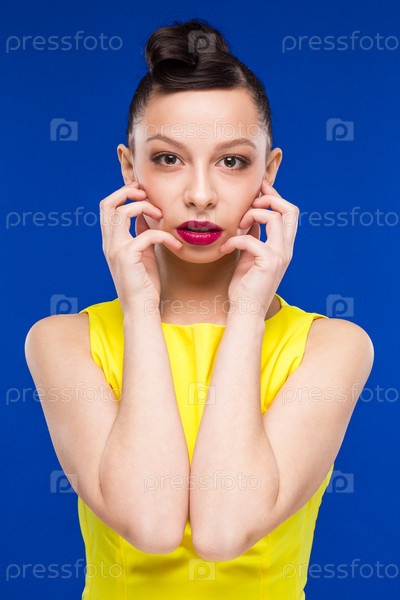 Портрет девушки с макияжем в желтом платье