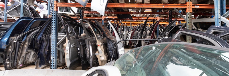 Рынок автозапчастей. На земле лежат двери, бамперы и ветровые стекла