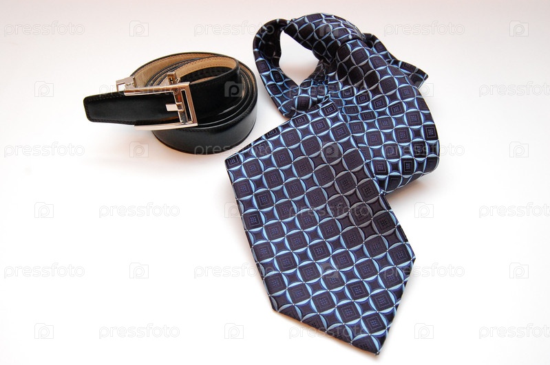 Мужской ремень и галстук на белом фоне