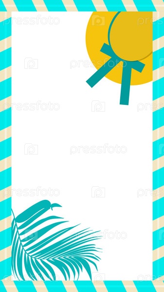 Вертикальная рамка с пальмовым листом и пляжной шляпой
