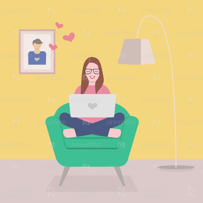 Девушка сидит в кресле с ноутбуком