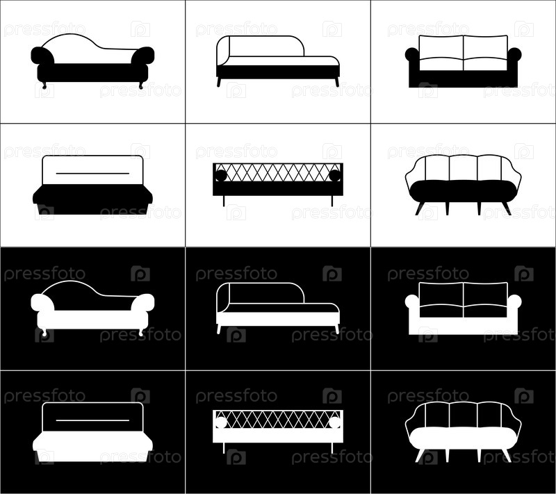 Набор мебельных иконок. Современные диваны. Белые и черные