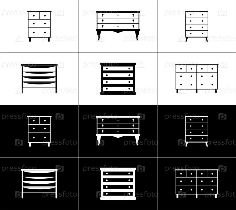 Набор контурных иконок мебели. Комоды на черном и белом фоне