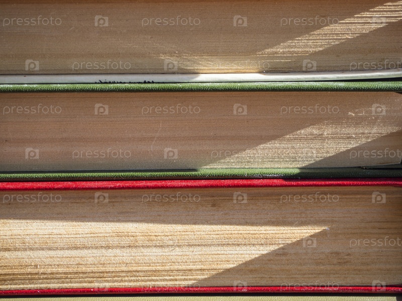 Крупный план пожелтевших краев страниц старых книг, сложенных в стопку, можно использовать в качестве фона, текстуру бумаги книг