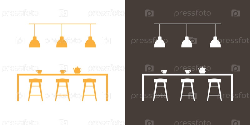 Силуэт интерьера столовой с кухонным столом и барными стульями