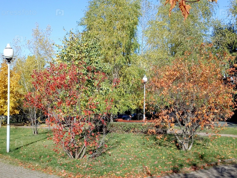 Осень в городском парке в сухой солнечный день