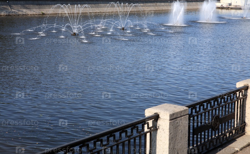 Фонтан на реке днем