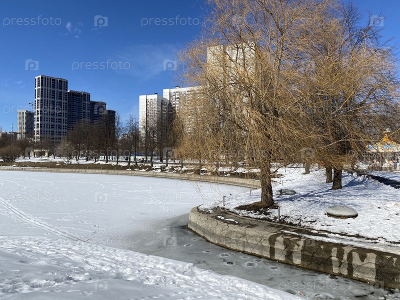 Зима в городском парке в сухой солнечный день