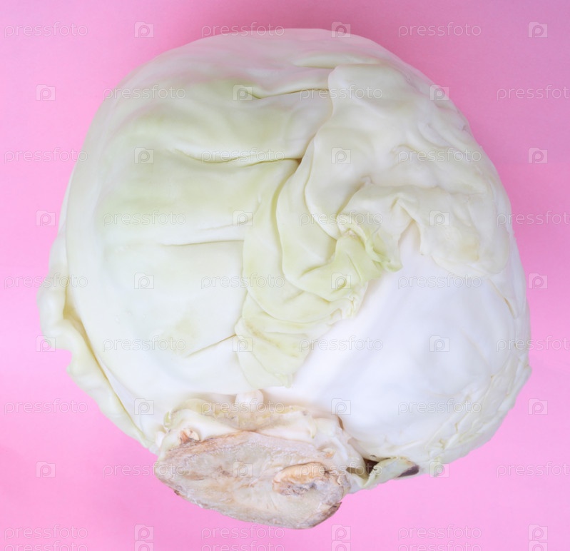 Голова белой капусты на розовом фоне