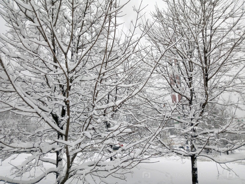 Городской парк после снегопада днем