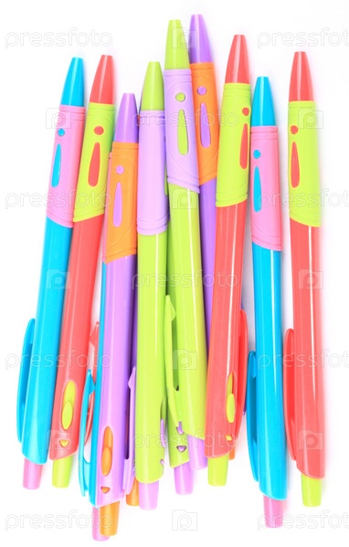 Много шариковая ручка на белом фоне