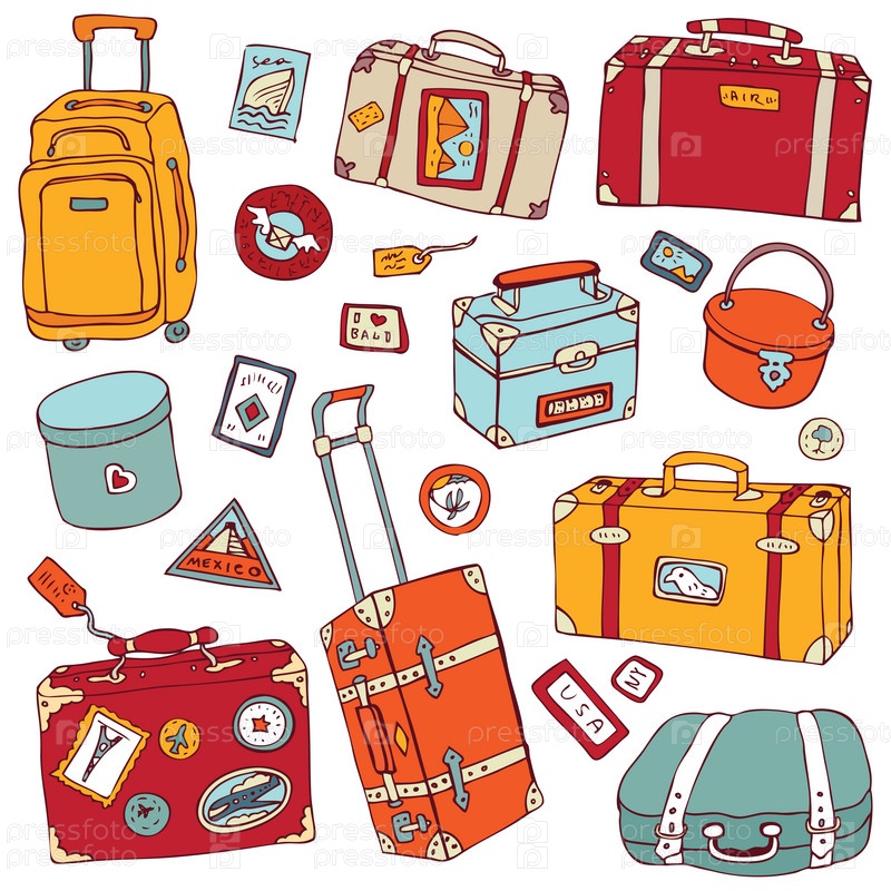 Винтажные чемоданы. Путешествия, векторные иллюстрации