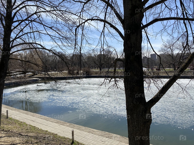 Весна в городском парке в солнечный день