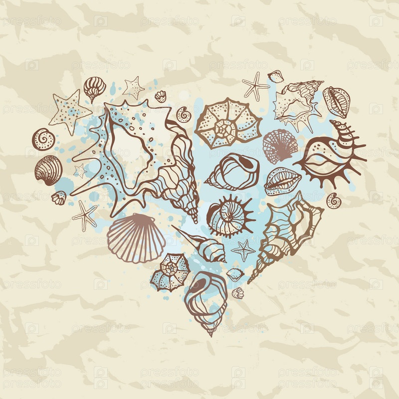Сердце из морских раковин. Иллюстрация