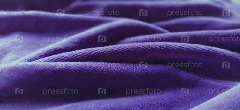 Синий морщинистый бархат. Бархатная ткань сине-фиолетового цвета, красиво уложенная волнами. Мягкий фокус