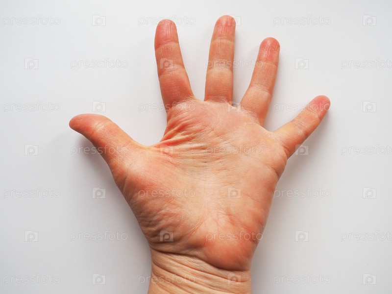 Ладонь руки на белом фоне. Поднятая вверх ладонь к зрителю. Голосуйте за знак с просьбой о помощи. Гадание по линиям на ладони, хиромантия. Дерматологические проблемы, обезвоженная кожа