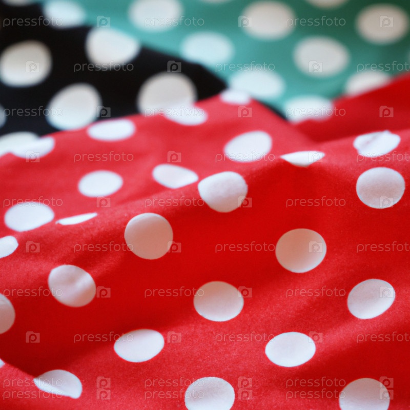 Белый горошек на красном розовом фоне, фон поверхности текстильной ткани. Зеленый горошек. Два слоя мятого материала