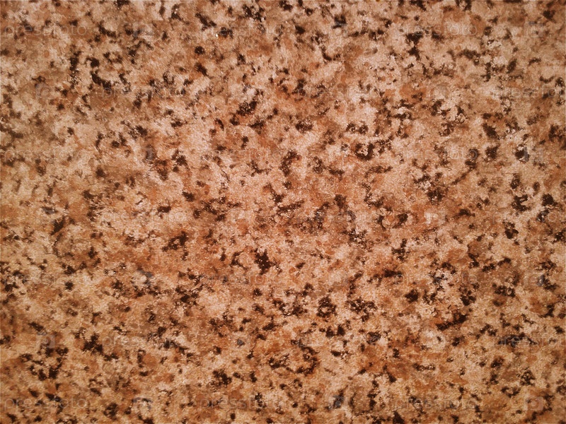 Гранитная гладь или плита теплых коричневых, серых, бежевых тонов с частыми черными пятнами и точками. Вариант внутренней отделки. Крупный план. Естественный фон. Каменная огранка