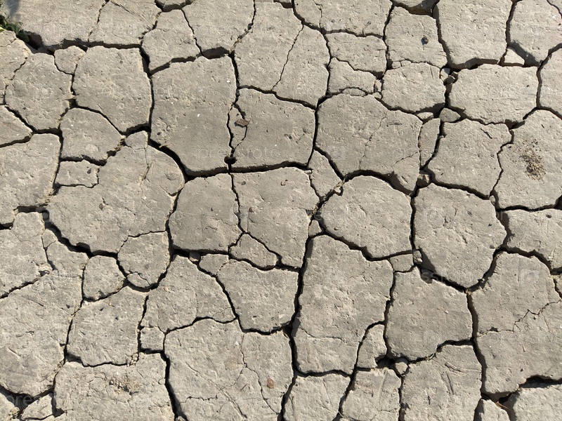 Трещины в земле. Засушливость. Серая почва. Пустыня. Крупным планом потрескавшейся грязи. Текстура