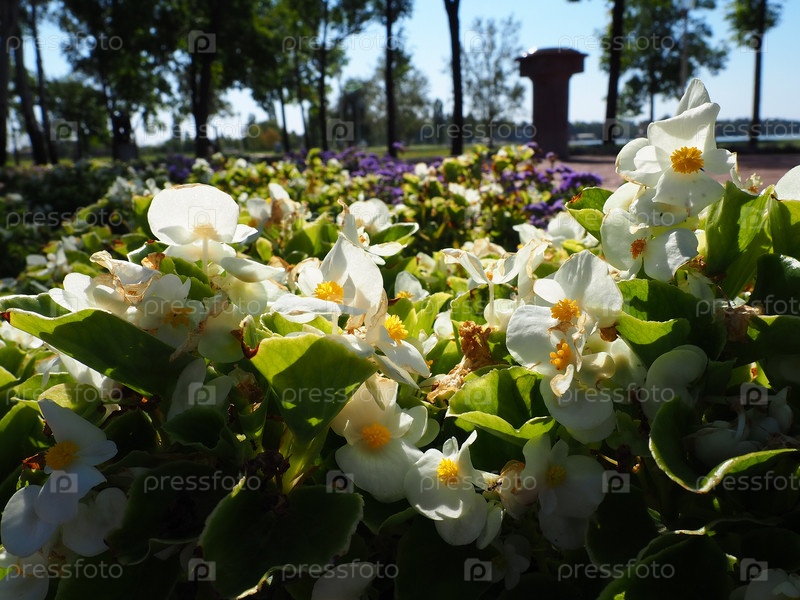 Бегония белая восковая или бегония вечноцветущая. Бегония х вечноцветущая культурная. Клумбовое растение в ландшафтном дизайне. Подходит для укладки на клумбы, бордюры и в качестве обрезчика. Использование в контейнерах и оконных ящиках