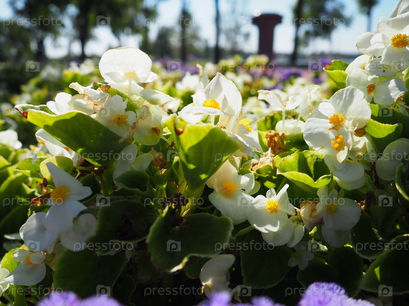 Бегония белая восковая или бегония вечноцветущая. Бегония х вечноцветущая культурная. Клумбовое растение в ландшафтном дизайне. Подходит для укладки на клумбы, бордюры и в качестве обрезчика. Использование в контейнерах и оконных ящиках