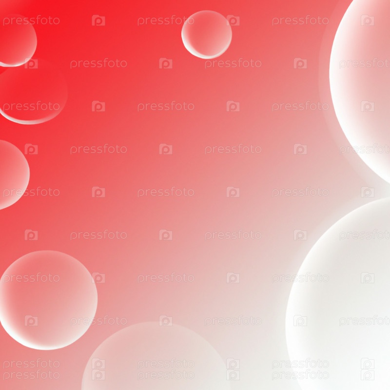 Белые пузыри на красно-белом фоне с плавным градиентом. Яркий рекламный фон или шаблон для визитки или пластиковой карты. Природа или макрокосм. Клетки крови и иммунитет