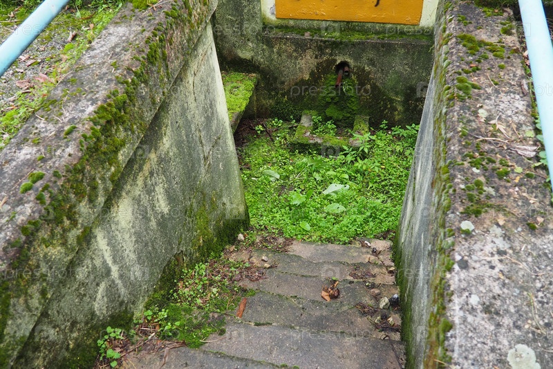 Баня Ковиляча, Лозница, Сербия. Гора Гучево, парк и лес. Источник минеральной серно-железистой воды Ракина Чесма Чесма. Родник у дороги на Гучево. Бетонный забор и лестница