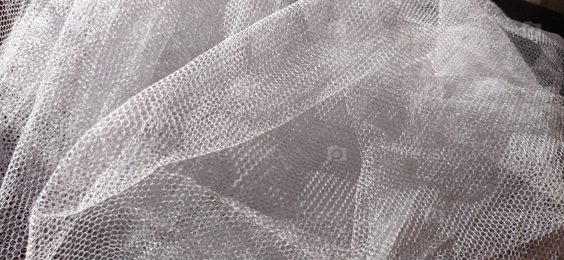 Белая тонкая сетчатая ткань. Ткань для вуалей, штор, москитных сеток, тюля и других изделий легкой промышленности. Синтетический мятый тюль