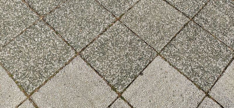 Каменная плитка с темной и светлой отделкой. Квадраты или ромбы, сфотографированные по диагонали. Шахматная плитка. Грубая каменистая поверхность. Плитка на дороге
