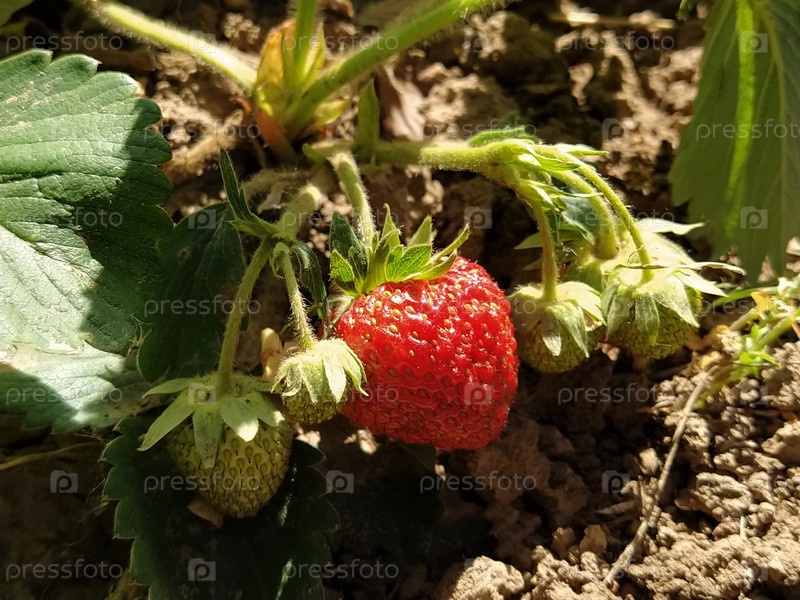 Куст свежей красной клубники. Закрыть. Выращивание клубники в саду или на ферме. Натуральный продукт. Концепция здорового питания. Защита посевов от вредителей