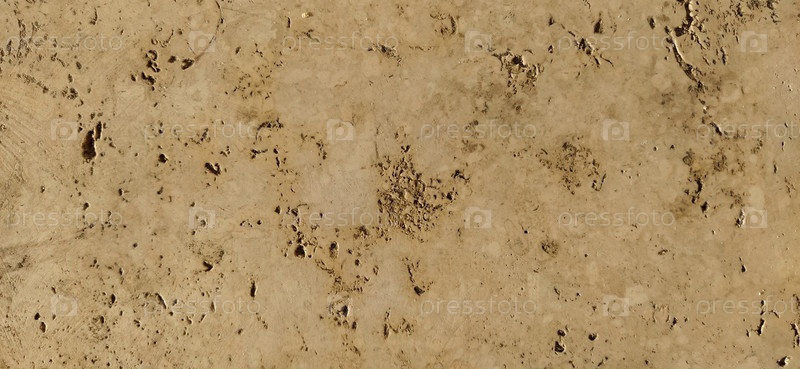 Песчаник или бежевый мрамор. Гладкая поверхность с небольшими темно-коричневыми пятнами и углублениями. Вечернее солнечное боковое освещение. Фрагмент исторического каменного здания на Калемегдане, Белград, Сербия