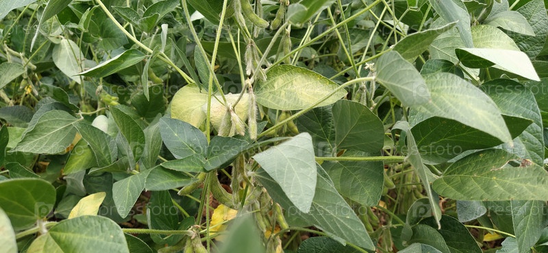 Соевое поле с растениями сои. Влияние погодных условий на урожай сои