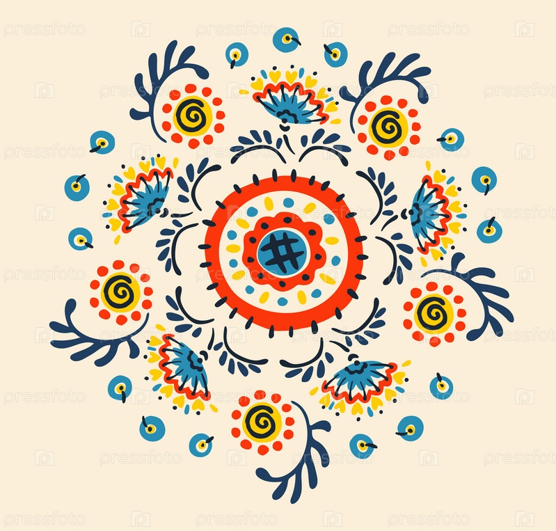 Набор этнических элементов. Бордюр представляет собой полосу с цветами, листьями, ветками, вензелями. Народная вышивка. Славянский, украинский, русский мотив. Хохлома, матрешка, дымковская игрушка. Мексиканский, индийский, цыганский ковер. Вязаное кружево