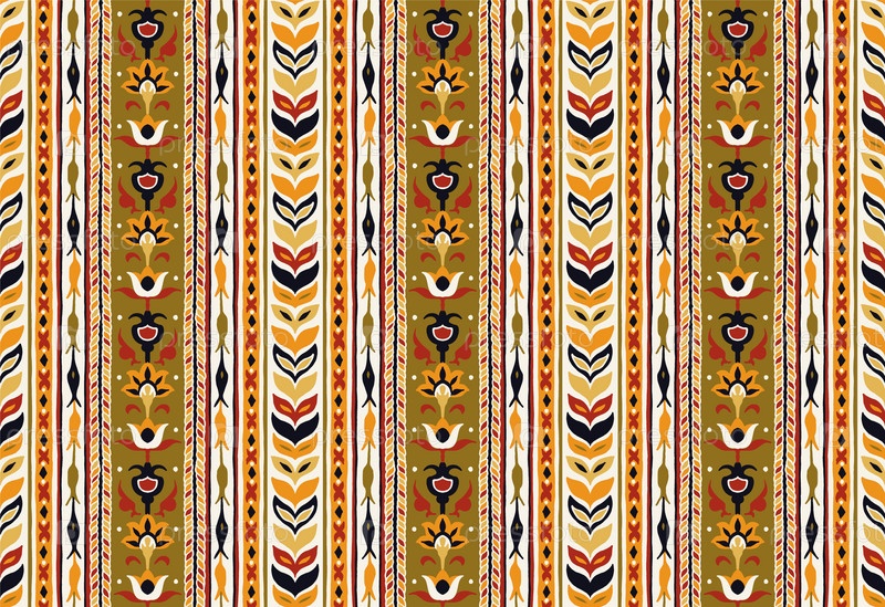 Геометрический дамасский орнамент. Икат границы. Этническая вышивка с листьями и монограммами. Племенная векторная текстура. Бесшовный народный узор в ацтекском стиле. Индийский, скандинавский, цыганский, мексиканский, африканский ковер
