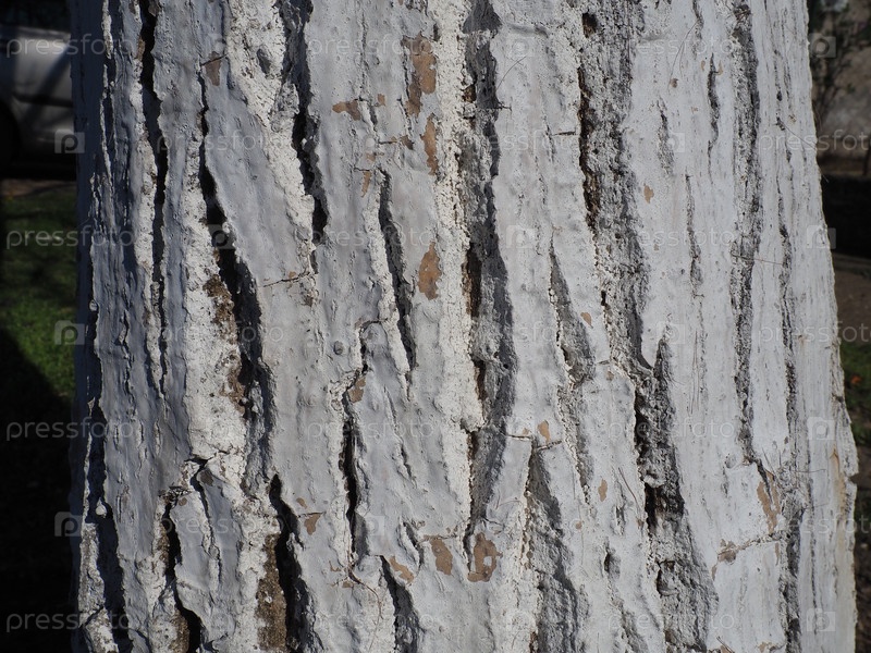 Белый ствол фруктового дерева. Защита дерева от насекомых - вредителей. Грецкий орех без листьев. Сельскохозяйственные и садоводческие работы весной. Белая краска на коре