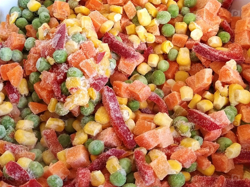 Мексиканская овощная смесь. Кусочки перца, моркови, кукурузы и зеленого горошка. Красочное сочетание самых свежих и самых острых овощей