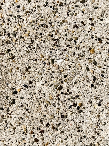 Бетонная поверхность с разноцветными вкраплениями мелких камней. Светло-бежевый тон. Стена здания или бетонная плита. Крупный план. Рябая поверхность цемента. Вариант внутренней или внешней отделки