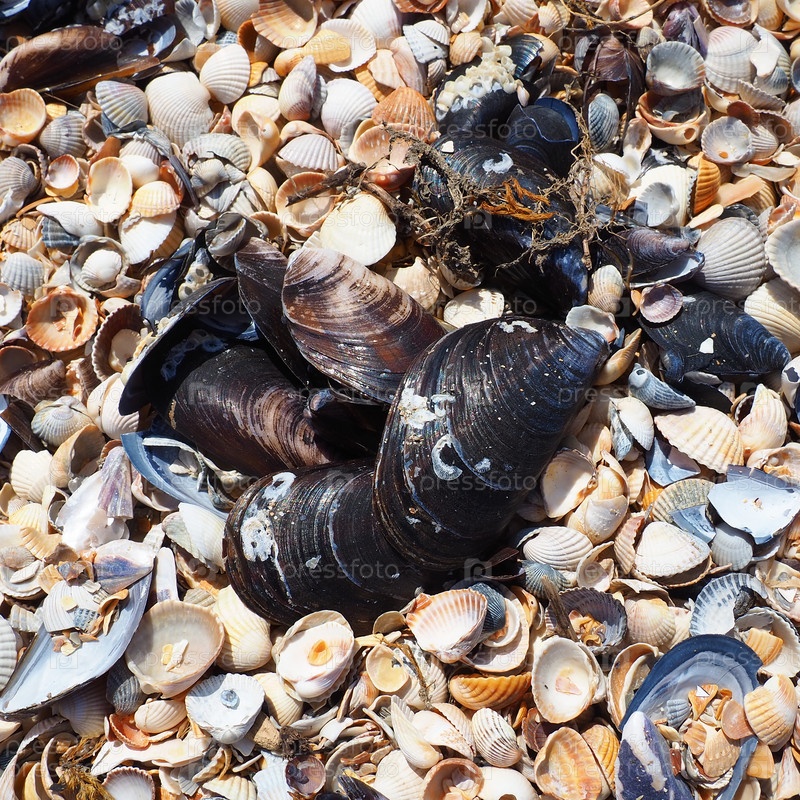 Раковины брюхоногих двустворчатых моллюсков. Азовское и Черное моря, Голубицкая. Ракушки на берегу. Cerastoderma lamarcki, Hypanis colorata, Anadara inaequivalvis, Mytilus galloprovincialis