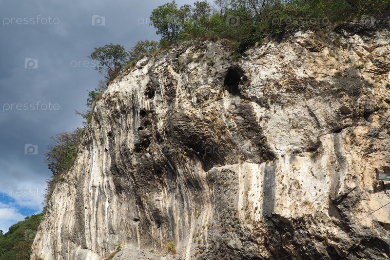 Горный массив в Мали Зворник, Сербия, месторождение сурьмы Брасина, Гучево. Скалы нависают над дорогой