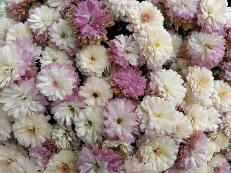 Фон стены цветов с удивительными белыми, розовыми, фиолетовыми и желтыми цветами хризантемы. Свадебное украшение. Красивый цветок плохой фон стены. Ландшафтный дизайн осеннего сада