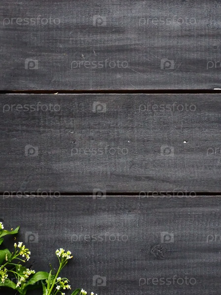 Цветы пастушеского кошелька на деревянном фоне. Копируйте место для текста. Карта для праздника. Деревянный фон. Белая пастырская сумка Capsella bursa-pastoris, растение семейства горчичных Brassicaceae