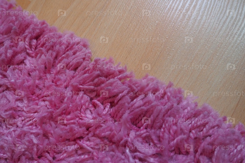 Ковер с длинным ворсом розового цвета на бежевом ламинате. Женственный интерьер для комнаты или спальни девушки или женщины. Дизайн интерьера в розовых тонах. Напольное покрытие - ламинат. Роль пылевых клещей в развитии аллергии