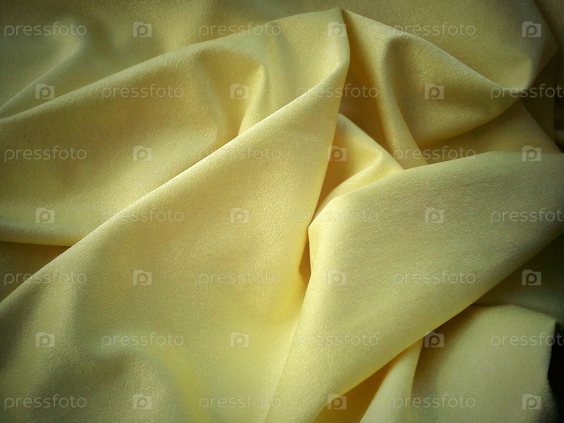 Красивые бархатные желтые шторы. Легкая небрежность при складывании материала. Мягкие, приятные на ощупь шторы для комнаты или кухни. Ткань для пошива одежды. Легкое темное краевое виньетирование