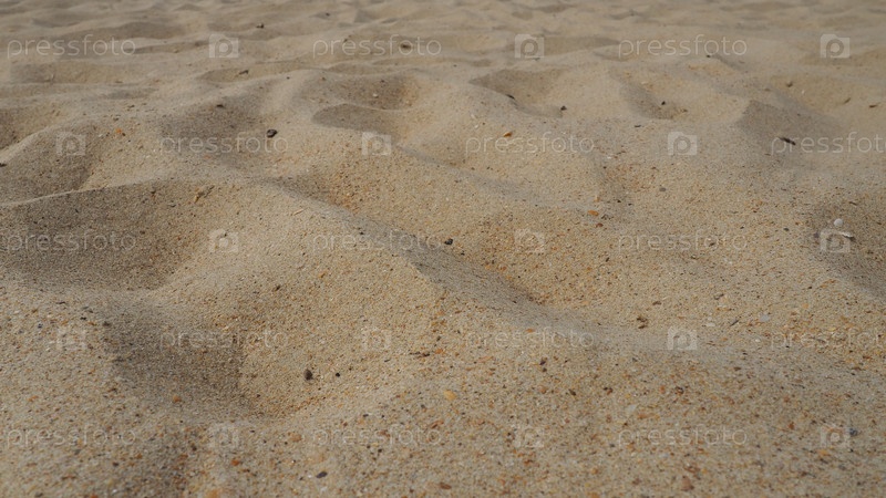 Песок при слабом солнечном свете в золотой час. Пустой пляж, следы и вмятины на песке. Дюны Черного моря. Рыхлая осадочная порода, состоящая из зерен горного кварца и минерала двуокиси кремния